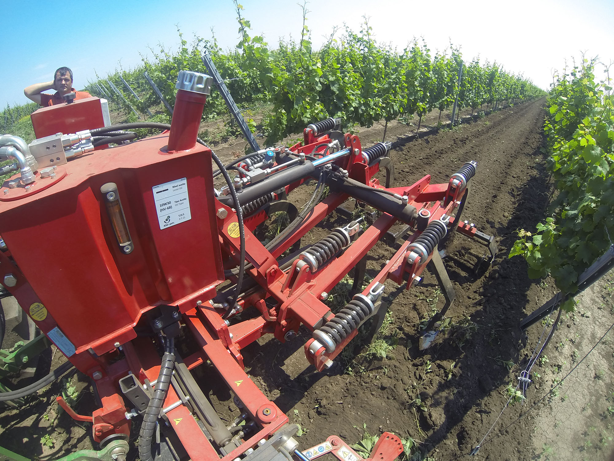Equipan 2 intercepas electrohidráulicos accionados mediante una central hidráulica y una caja de mandos instalada en la cabina de tractor ideado para trabajos alrededor de las plantas incluso de muy pequeño grosor (desde 1 cm. de diámetro del tronco) con diferentes herramientas que permiten trabajos tanto de superficie sin removido de tierra como de otros incluso con profundidad de labor de hasta 20 cm controlado por un palpador regulable equipado con sensor inductivo.