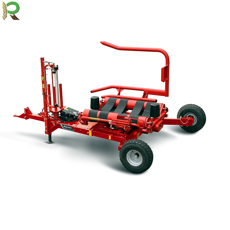 El brazo de carga de accionamiento hidráulico está situado en el lado derecho y puede manejar pacas de 1,20 m a 1,50 m de diámetro.