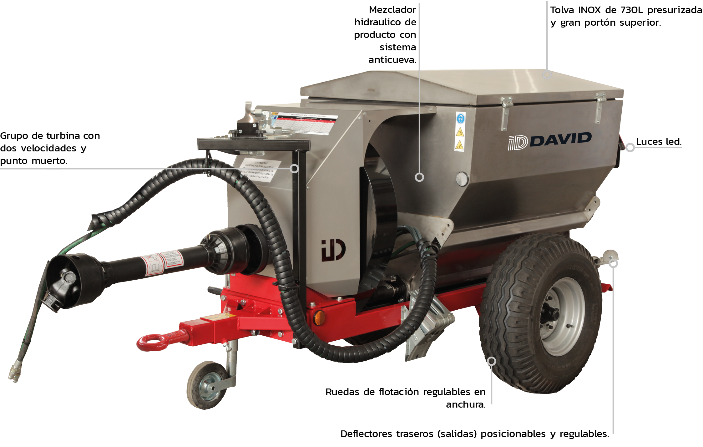 - Dosificación homogénea y precisa de todo tipo de productos en polvo o microgranulados gracias a su sistema de vaciado volumétrico mediante sinfines hidráulicos proporcionales.