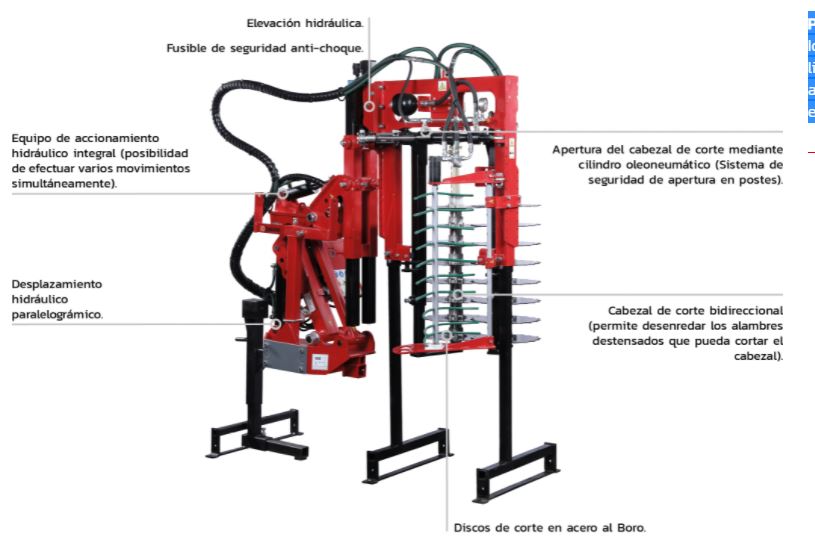 • Apertura del cabezal de corte mediante cilindro oleonuemático.