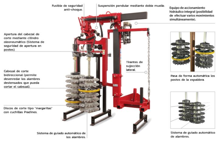 • Apertura del cabezal de corte mediante cilindro oleonuemático.