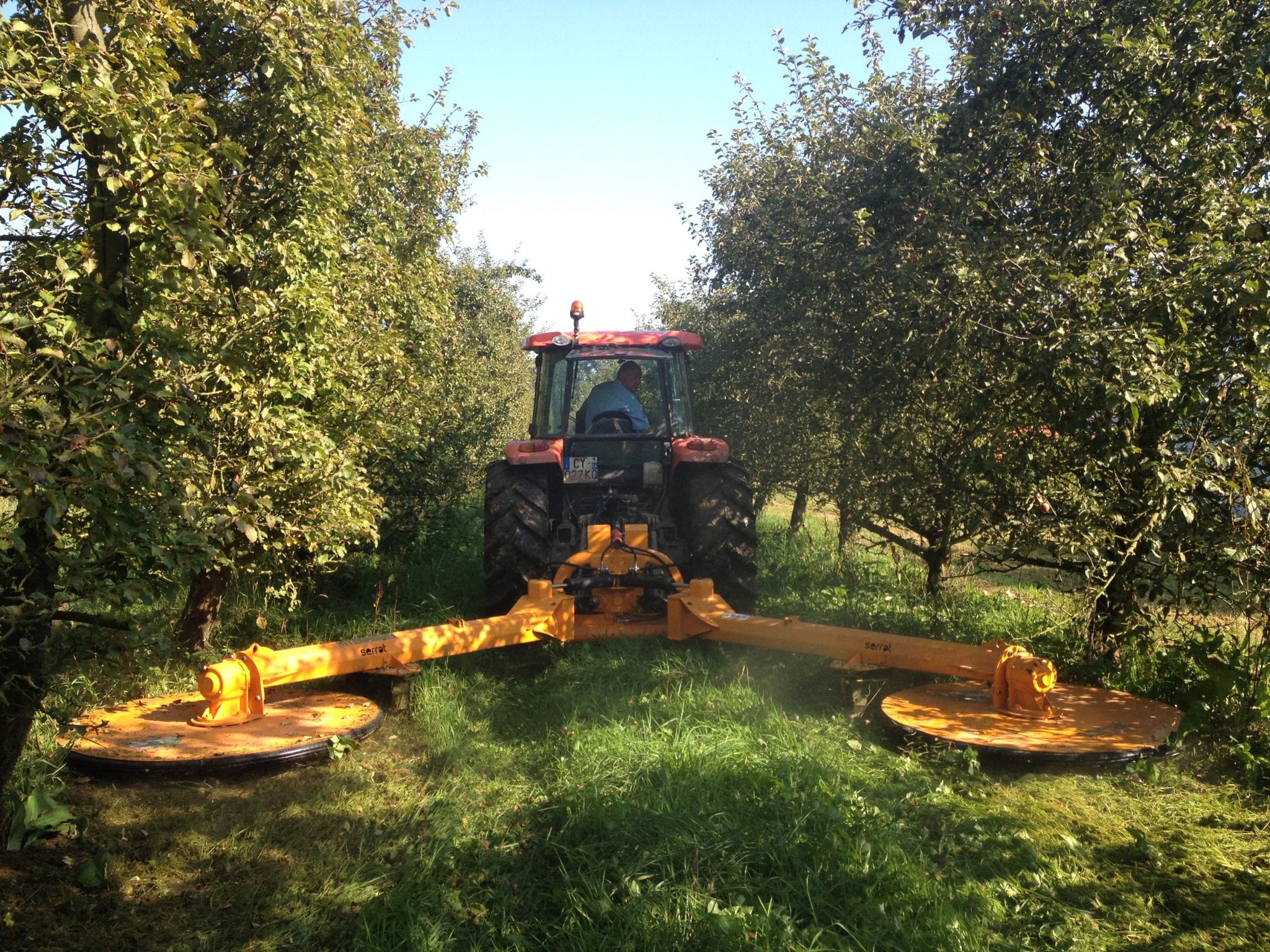 Simple/doble plato de eje vertical con accionamiento mecánico para el mantenimiento de la base de árboles frutales.