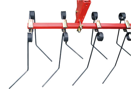 - Los ajustes posibles son de la presión ejercida y su ángulo de trabajo, mediante un sistema de muelle, que ajusta el ángulo de la barra porta-púas.