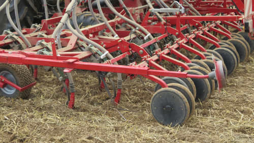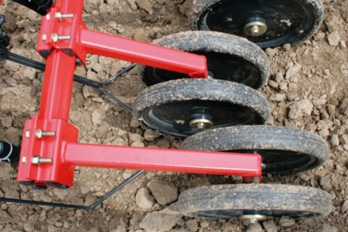 - Entre las ruedas se sitúan unos dedos en V que se encargan del enterrado de la semilla.